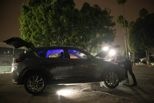 The LA-based nomadic art collective, High Beams, partnered with Hyperlink to arrange a curate a one-night outdoor exhibition at RMCAD